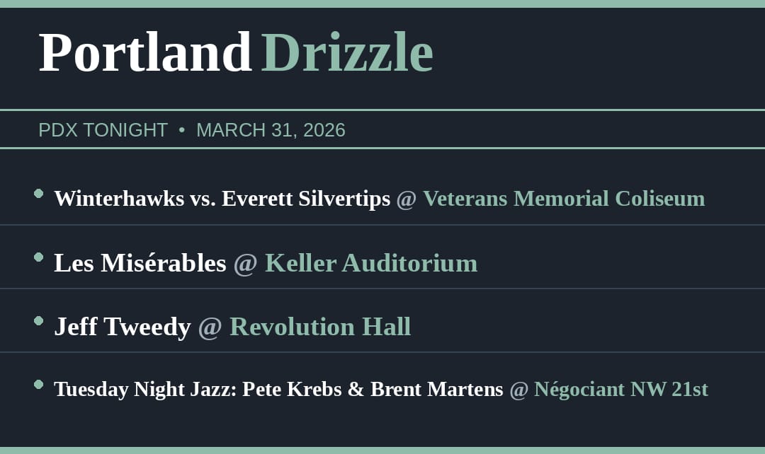 🦬Tuesday Shmuesday. Dry and mild today — upper 50s, which in Portland means people will be in shorts. The PCC strike has ended and the union is voting this very moment. Also: the Winterhawks are home tonight for a playoff game, and PDX TSA workers are finally getting paid.