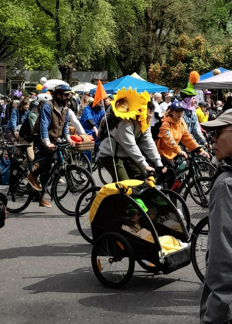 Hundreds of Portlanders descended on Ladd's Addition Saturday for the 10th annual Ladds 500 — a daylong relay where teams circle a single traffic roundabout 500 times. That's 100 miles of turning left. The official motto: "It's spring, let's do something stupid." By all accounts, they nailed it. Lots of great photos and videos on IG @Ladds500